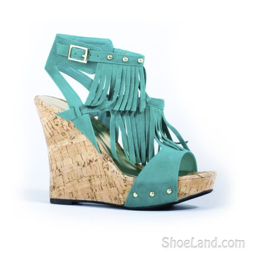 With a towering cork wedge heel and layers of flamboyant fringe, these shoes are